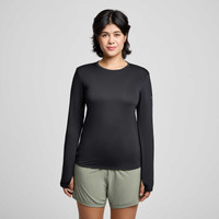 Redesigned for incredible breathability and optimal stretch. FEATURES & BENEFITS - Dialed in fit and function - Best-in-class sweat-wicking - Now with superior 4-way stretch material - Flat lock seams - Made of 92% Recycled Polyester - Best for: Daily runs or workouts - Active fit - Primary material: 140 g/m2 92% Polyester (Recycled) / 8% Elastane - Shaped hem is ideal for layering whether tucked or untucked - Small internal locker loop for hanging to dry - Features integrated thumbhole - Reflective logos and Saucony patch logo - Model is wearing a size small