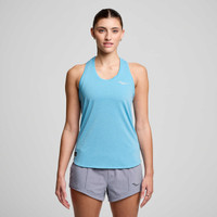 Redesigned for incredible breathability and optimal stretch. FEATURES & BENEFITS - Dialed in fit and function - Best-in-class sweat-wicking - Now with superior 4-way stretch material - Flat lock seams - Made of 92% Recycled Polyester - Best for: Daily runs or workouts - Active fit - Primary material: 140 g/m2 92% Polyester (Recycled) / 8% Elastane - Racerback - Shaped hem is ideal for layering whether tucked or untucked - Small interval locker loop for hanging to dry - Reflective logos and Saucony patch logo - Model is wearing a size small