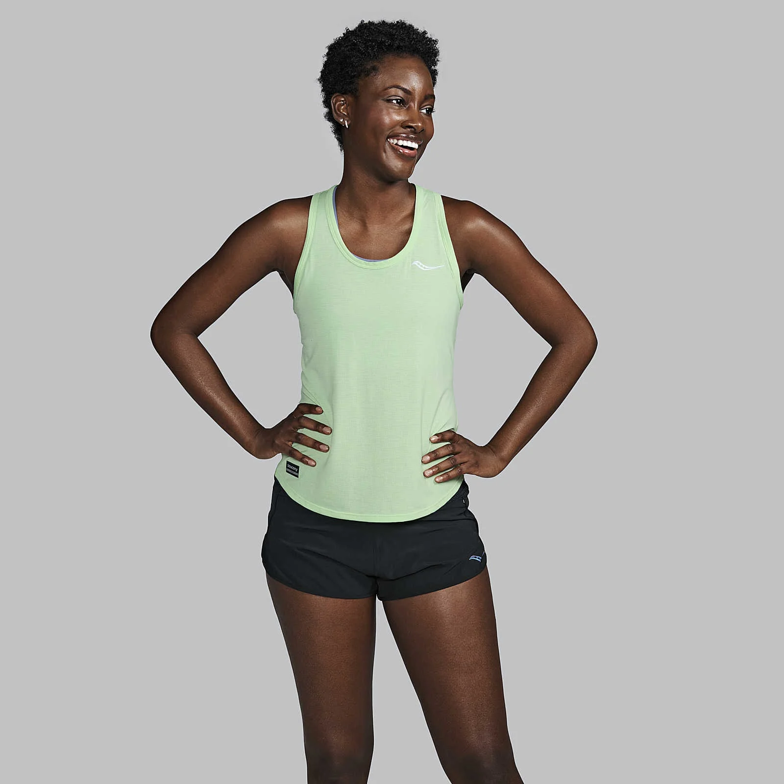 Redesigned for incredible breathability and optimal stretch. FEATURES & BENEFITS - Dialed in fit and function - Best-in-class sweat-wicking - Now with superior 4-way stretch material - Flat lock seams - Made of 92% Recycled Polyester - Best for: Daily runs or workouts - Active fit - Primary material: 140 g/m2 92% Polyester (Recycled) / 8% Elastane - Racerback - Shaped hem is ideal for layering whether tucked or untucked - Small interval locker loop for hanging to dry - Reflective logos and Saucony patch logo - Model is wearing a size small