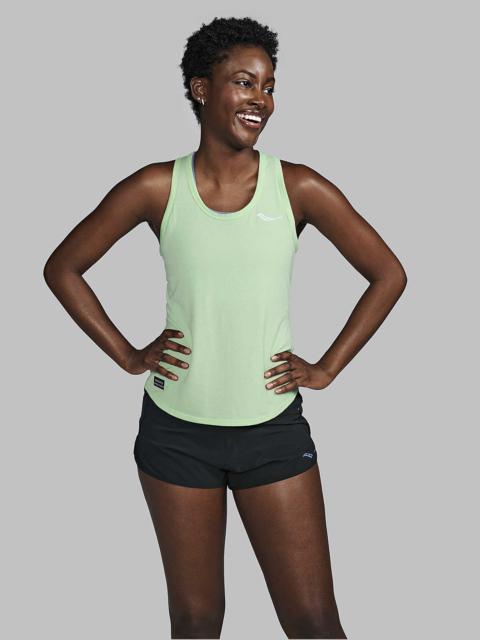Redesigned for incredible breathability and optimal stretch. FEATURES & BENEFITS - Dialed in fit and function - Best-in-class sweat-wicking - Now with superior 4-way stretch material - Flat lock seams - Made of 92% Recycled Polyester - Best for: Daily runs or workouts - Active fit - Primary material: 140 g/m2 92% Polyester (Recycled) / 8% Elastane - Racerback - Shaped hem is ideal for layering whether tucked or untucked - Small interval locker loop for hanging to dry - Reflective logos and Saucony patch logo - Model is wearing a size small
