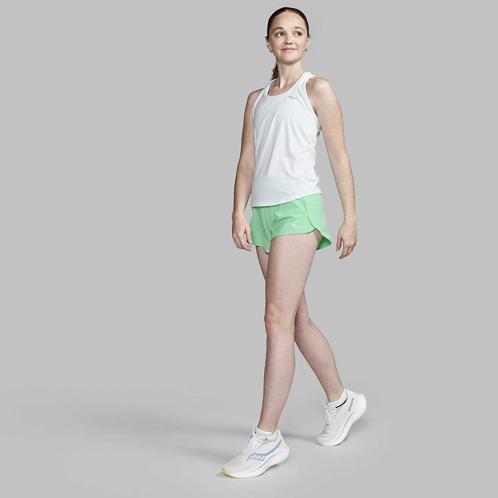 Redesigned for incredible breathability and optimal stretch. FEATURES & BENEFITS - Dialed in fit and function - Best-in-class sweat-wicking - Now with superior 4-way stretch material - Flat lock seams - Made of 92% Recycled Polyester - Best for: Daily runs or workouts - Active fit - Primary material: 140 g/m2 92% Polyester (Recycled) / 8% Elastane - Racerback - Shaped hem is ideal for layering whether tucked or untucked - Small interval locker loop for hanging to dry - Reflective logos and Saucony patch logo - Model is wearing a size small