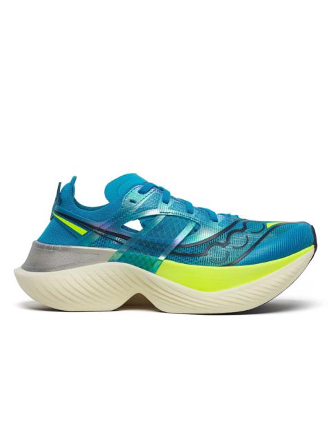 One look and you'll realize the Endorphin Elite is built to break barriers. Fueled by SPEEDROLL technology, this race shoe features our most aggressive on-your-toes experience. Designed around a slotted carbon plate, it's propulsive and forgiving at the same time. And the ultralight, IAAF-compliant stack of PWRRUN HG foam is the holy grail: delivering ridiculous rebound and cushioned comfort mile after mile efficiency. 4 years in development, Endorphin Elite is the turbocharged marathon shoe you've been waiting for. Made for Race Day SUPPORT: Neutral CUSHIONING: PWRRUN HG WEIGHT: Men: 7.2oz (204g) Women: 6.5oz (185g) OFFSET: 8mm (39.5mm/31.5mm) Highlights - PWRRUN HG foam cushioning for maximum energy return and fresh legs. - Slotted carbon plate for superior energy return and adaptive ride. - Featherweight breathable knit and mesh upper for connected performance. FEATURES & BENEFITS - PWRRUN HG foam cushioning gives you the energy you need to fly past the competition - New plate geometry from heel to toe helps you capitalize on your quickness - A upper combined of knitted and mesh materials for a lightweight feel that wont hinder your stride - Sustainability: This style is vegan and contains recycled materials - Category: Neutral/Race Day - Heel-to-toe Offset: 8mm (39.5/31.5mm forefoot) - Weight: Women's 6.5oz (185g)