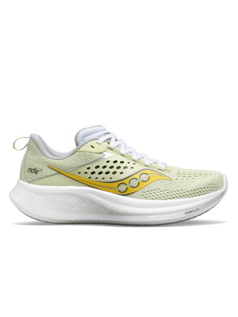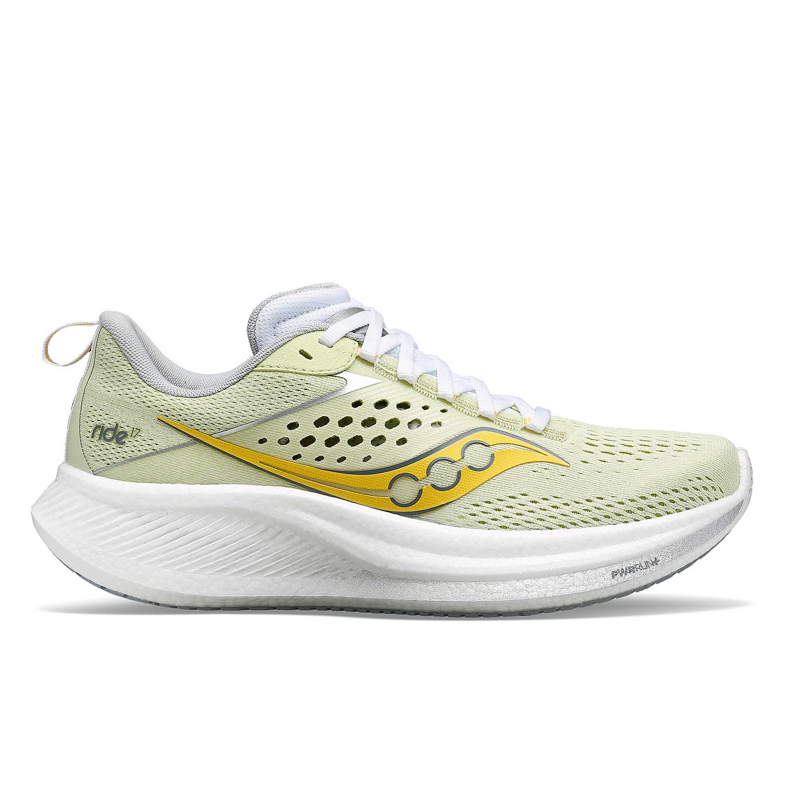Screen time is creeping more and more into all of our run time. So we decided to do something about it. The Ride 17 is a full transformation from the ground up, creating an all-natural dopamine hit that encourages you to move your feet more than your feed. It features a completely redesigned cushioning system for extra comfort and energy return. Making it a truly versatile shoe, from warm up to uptempo runs. Set your phone to DND and enjoy. Made for Daily Movement SUPPORT: Neutral CUSHIONING: PWRRUN+ WEIGHT: Men: 9.9oz (282g) Women: 8.4oz (238g) OFFSET: 8mm (35/27mm) Highlights - PWRRUN+ foam - our softest-feeling foam that's unbelievably plush and springy - Increased outsole coverage - greater protection and durability - Enhanced fit - taking your feedback from Ride 16, we focused on comfort-first performance - Engineered mesh upper - extra breathable and comfortable FEATURES & BENEFITS - Upgraded Cushioning: our advanced PWRRUN+ foam provides supreme, lightweight cushioning you crave for all-day comfort - More Rebound: Experience that pep in your step and feel reenergized for a longer run or full day on your feet - Extra breathability from our newly engineered mesh so your feet can stay comfortable, longer - 360-degree adaptive fit designed to move with you - Best For: Daily Run/Workout/Casual Movement - Heel-to-toe Offset: 8mm (35mm heel/ 27mm forefoot) - Weight: Women's 8.4oz (238g) - Sustainability: This style is vegan and contains recycled materials