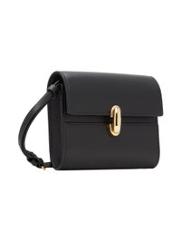 Grained calfskin shoulder bag in black. · Adjustable and detachable crossbody strap · Press-stud flap · Six card slots at interior · Buffed leather lining · Gold-tone hardware · H4.5" x W4.75" x D1.5" Supplier color: Black Calfskin. Made in Italy 242163F048003
