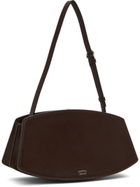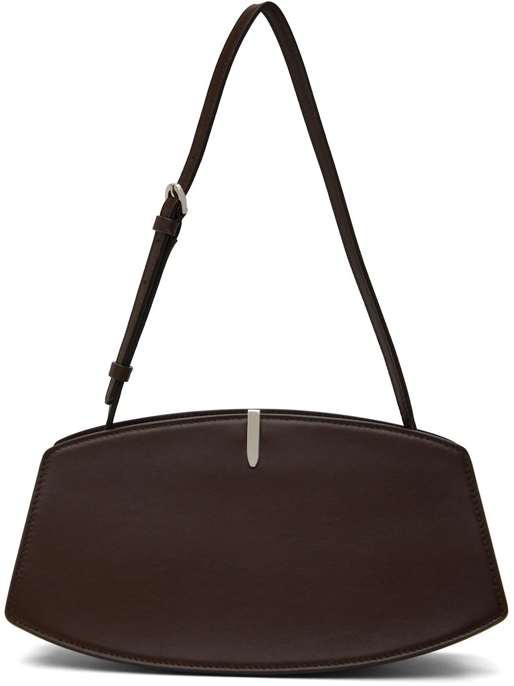 Buffed calfskin shoulder bag in brown. · Adjustable shoulder strap · Silver-tone hardware at face · Accordion panel at sides · Logo stamp at back face · Magnetic tab closure · Card slot at two-compartment interior · Buffed calfskin lining · H5.75" x W10.75 x D4" Supplier color: Coffee Calfskin. Made in Italy 251163F048007