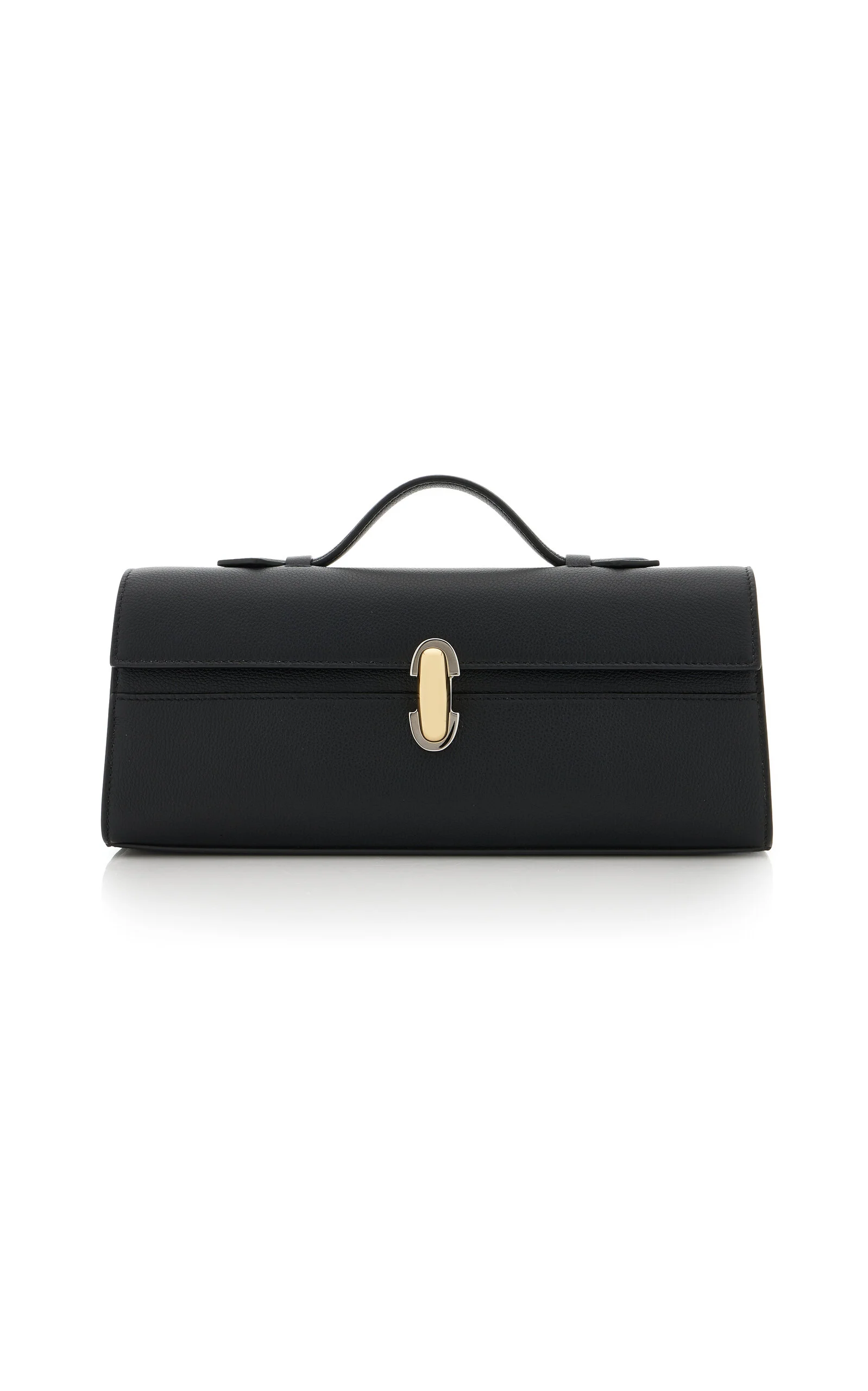 Savette's handcrafted designs are heritage craftsmanship in modern form. The Symmetry collection celebrates geometry in its purest forms. Elegant and pared back, the pochette is made from milled leather with a signature Symmetry turnlock, one interior pocket, and a leather handle. PRODUCT DETAILS - Turn-lock fastening - Composition: calf leather - Made in Italy