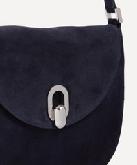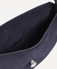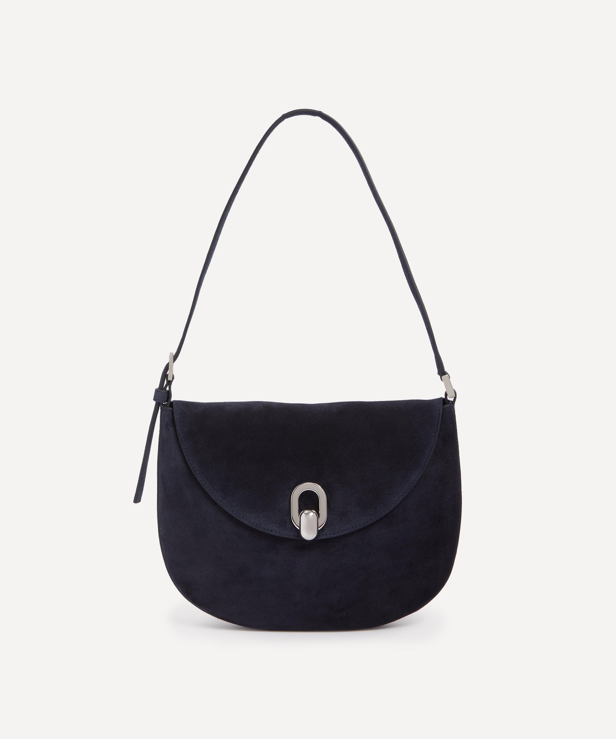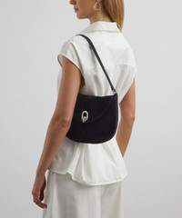 DETAILS Hobo shoulder bag Suede leather Tonal stitching Fold-over flap with hook fastening Adjustable shoulder strap Internal pocket COMPOSITION & SIZE 100% Calfskin H: 18cm, W: 24cm, D: 4cm Strap: 59cm