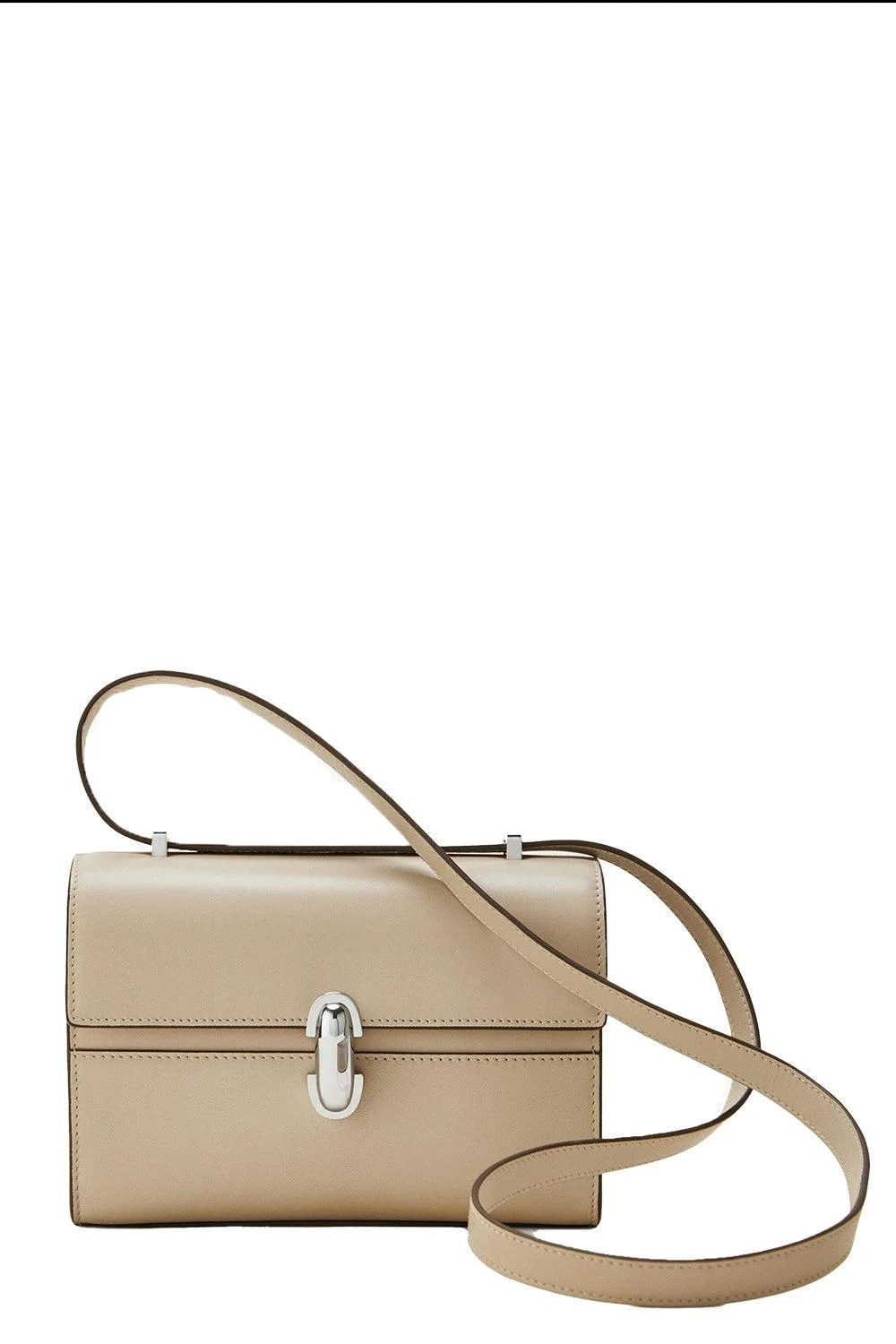 DETAILS AND INSIGHT Savette symmetry bag 19 in bone. 100% Calf 8L x 5W x 2.5D" Fits Iphone 16 Pro Max Made In Italy Style H-004-01-01-270