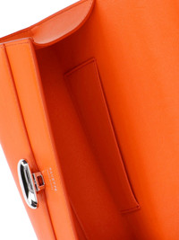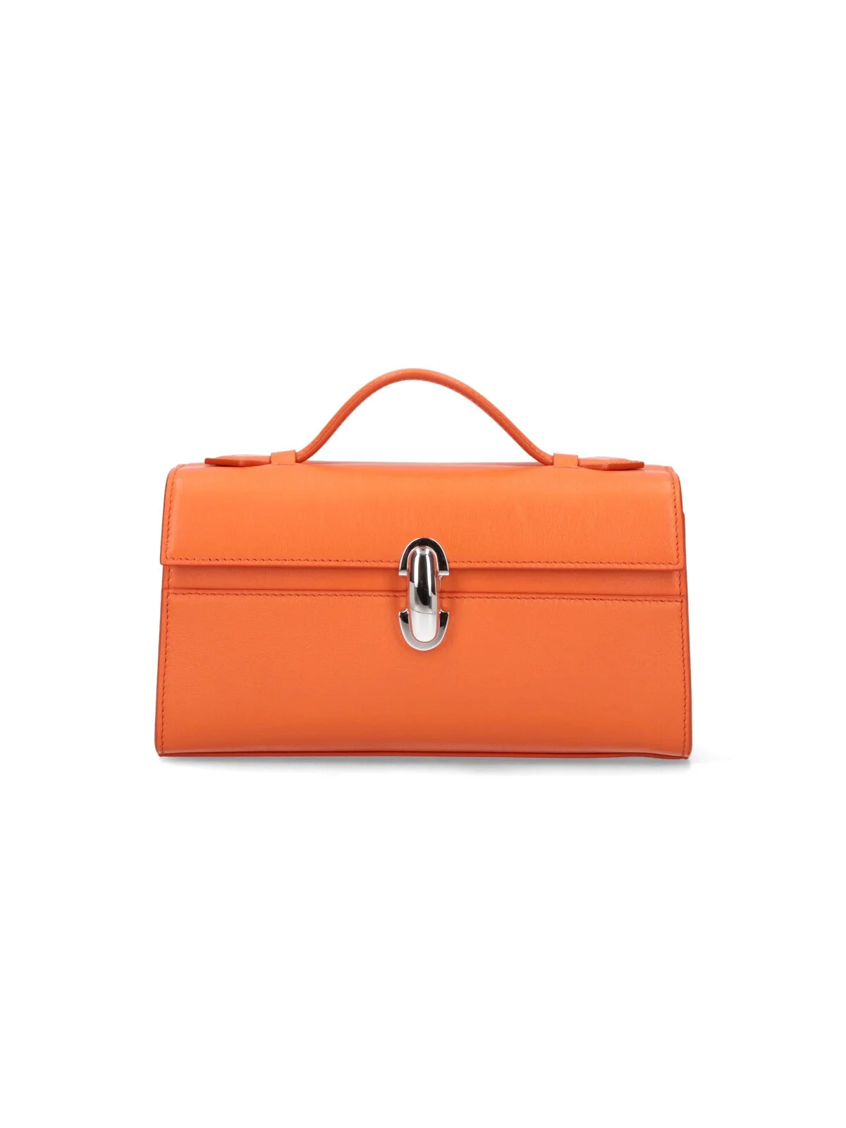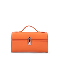 SAVETTE 'SYMMETRY' CLUTCH BAG IN ORANGE CALF LEATHER WITH TOP HANDLE, TURN-LOCK FLAP CLOSURE, LOGO PRINT DETAIL, INNER FLAT POCKET, MAIN INNER COMPARTMENT. PRODUCT INFO PRODUCT CODE H 005 01820 COMPOSITION: 100% CALF LEATHER SIZE AND FIT: H 12 X W 22 X D 7 CM MADE IN: ITALY - TRIMS: 100% METAL