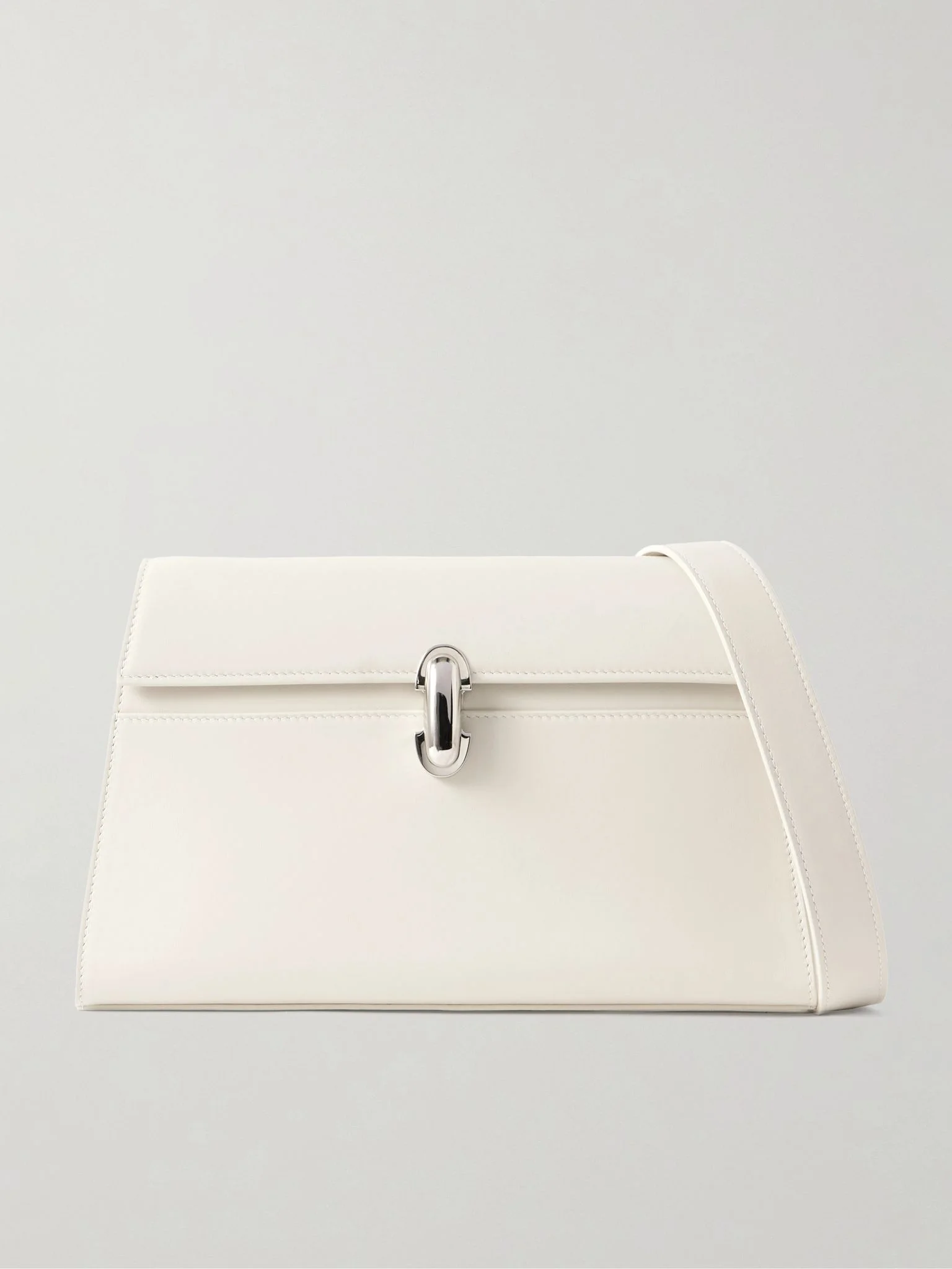 Heirloom-quality craftsmanship is at the core of Savette, and this 'Symmetry' shoulder bag is designed to be a timeless piece you'll treasure for years. Made in Italy from smooth leather, it has a minimalist trapeze design with silver-tone hardware. There's enough space for your phone, keys and lipstick inside the compact interior. Details & Care - White leather (Calf) - Shoulder strap - Internal slip pocket - Unlined - Twist lock-fastening front flap