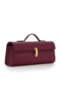 Savette's handcrafted designs are heritage craftsmanship in modern form. The Symmetry collection celebrates geometry in its purest forms. Elegant and pared back, the pochette is made from smooth leather with a signature Symmetry turnlock, one interior pocket, and a leather handle. PRODUCT DETAILS - Turn-lock fastening - Composition: calf leather - Designer color: Plum - Made in Italy