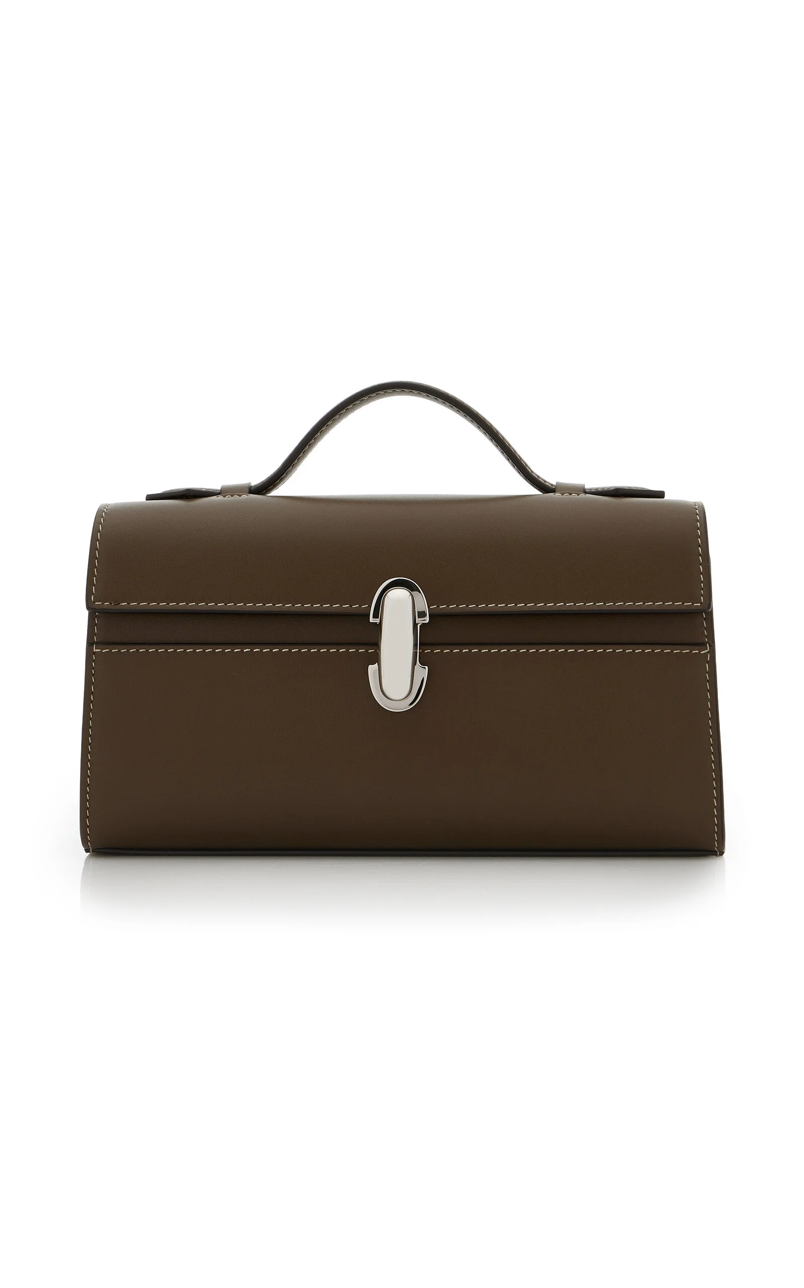 Savette's handcrafted designs are heritage craftsmanship in modern form. The Symmetry collection celebrates geometry in its purest forms. Elegant and pared back, the pochette is made from smooth leather with a signature Symmetry turnlock, one interior pocket, and a leather handle. PRODUCT DETAILS - Turn-lock fastening - Composition: leather - Designer color: Mink - Made in Italy