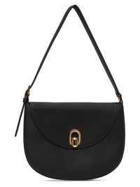 Grained calfskin shoulder bag in black. · Adjustable shoulder strap · Magnetic tab-slot flap · Card slot at interior · Suede lining · H7.5" x W9.5" x D1" Supplier color: Black