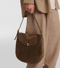 Product Details - Material: calf leather - Lining: suede - Made in Italy - Designer color name: Mink 021 - Closure: push-lock fastening - Internal details: internal slot pocket - Shoulder strap - Includes: dust bag - Item number: P00972030 Size & Fit - Height 31cm-12" - Width 30cm-12" - Max. depth 7,5cm-3" - Min. length shoulder strap 53cm-21" - Max. length shoulder strap 60cm-23.5"