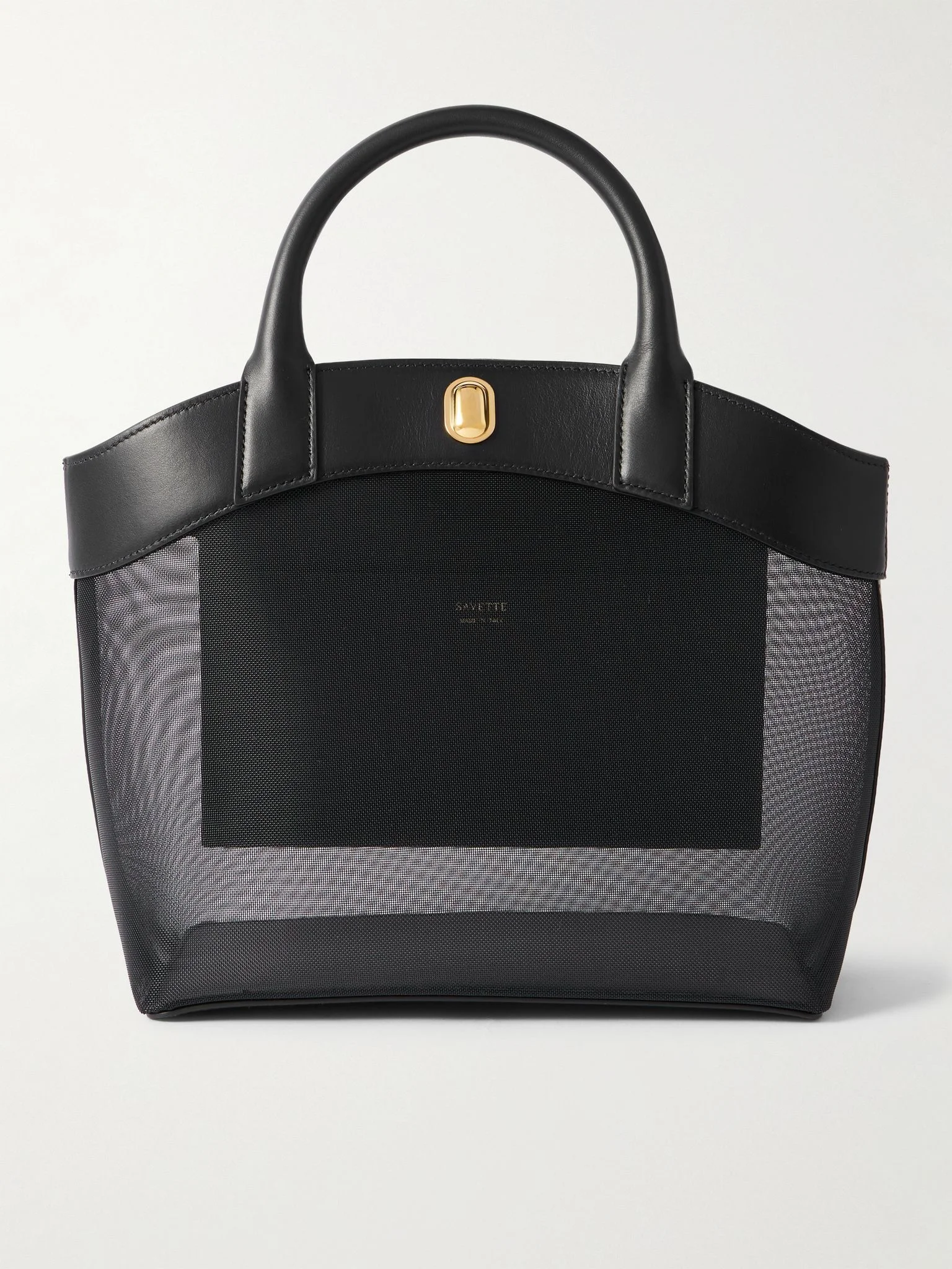 Savette's bags are handcrafted at the label's Florence atelier using traditional techniques. Made from structured mesh, this 'Tondo' tote is trimmed with supple leather and has a curved shape with top handles and subtle gold-tone hardware. There's enough space inside for your phone, wallet and cosmetics pouch. Details & Care - Black leather and mesh - Top handles - Unlined - Push-clasp fastening at top