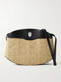 Tondo leather-trimmed raffia shoulder bag