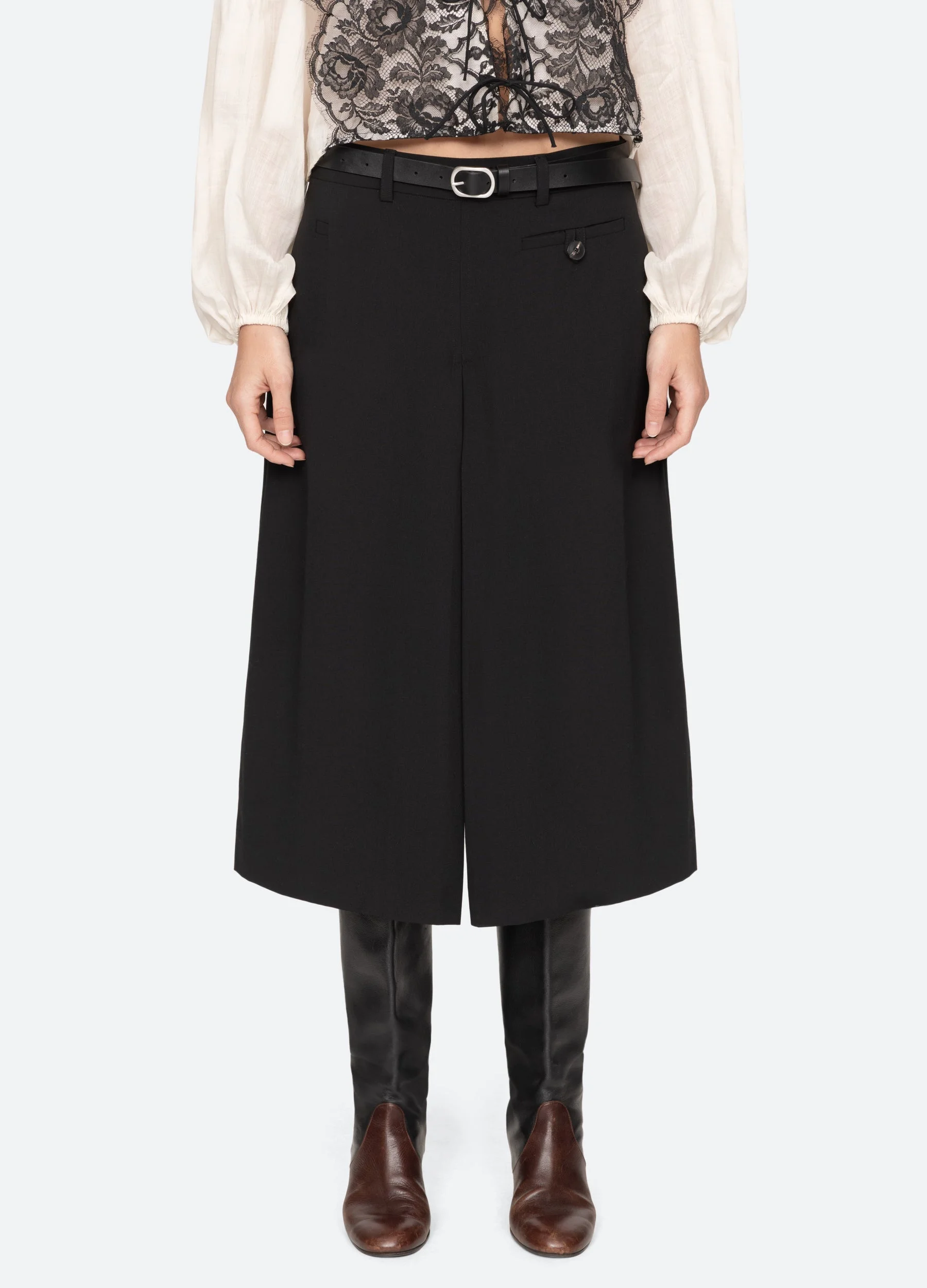 The Adeline wool belted culotte embodies effortless sophistication with its soft pleats and wide-leg, cropped silhouette. DETAILS - self-51% polyester, 44% wool, 5% spandex - belt-100% leather - invisible side zipper - designed for a slimmer fit - style #AW25-002 - model is 5'10'' and wearing a size 4