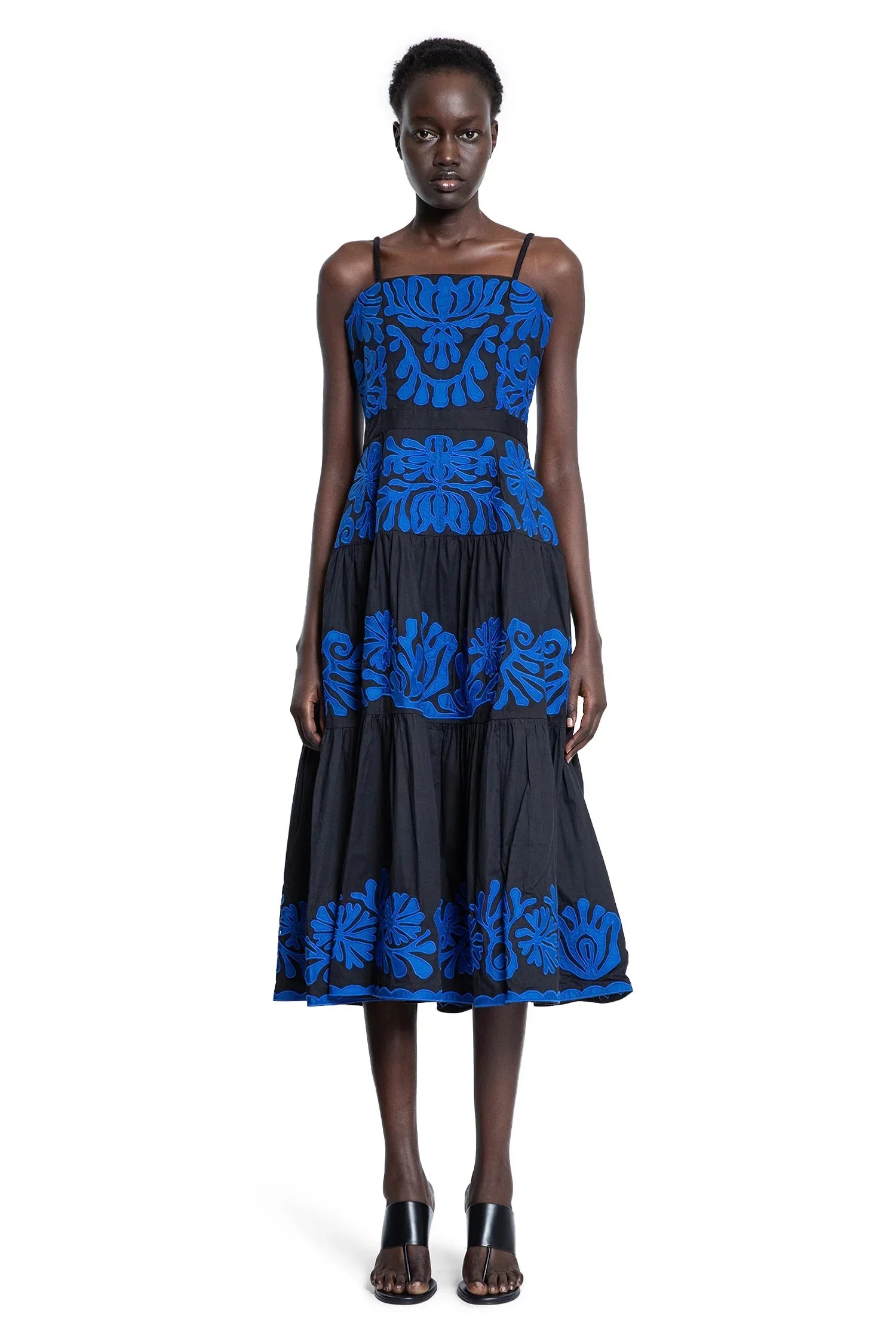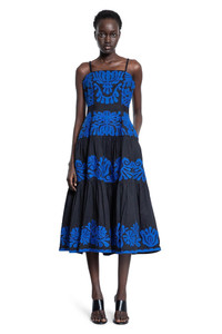 DESCRIPTION - Multicolor - Black/blue - Seasonal embroidery - Shoulder strap - Ruched panels - Shirred back - Back zip closure - Fitted DETAILS - Made in: India - Composition: 100% Cotton - Model code: RS25075 - Item ID: 9446275416406 SIZE & FIT Model wears size 6 Model Height 177 cm Bust 77 cm Waist 59 cm Hips 86 cm