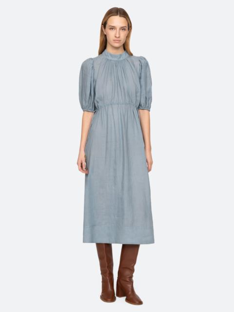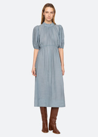 The Anise short sleeve dress embodies modern femininity with its soft puff sleeves, graceful midi silhouette, and adjustable waistband with tassel charm accents. DETAILS - self-100% ramie - lining-100% cotton - button back closure - designed for a relaxed fit - style #AW25-008 - model is 5'10'' and wearing a size S