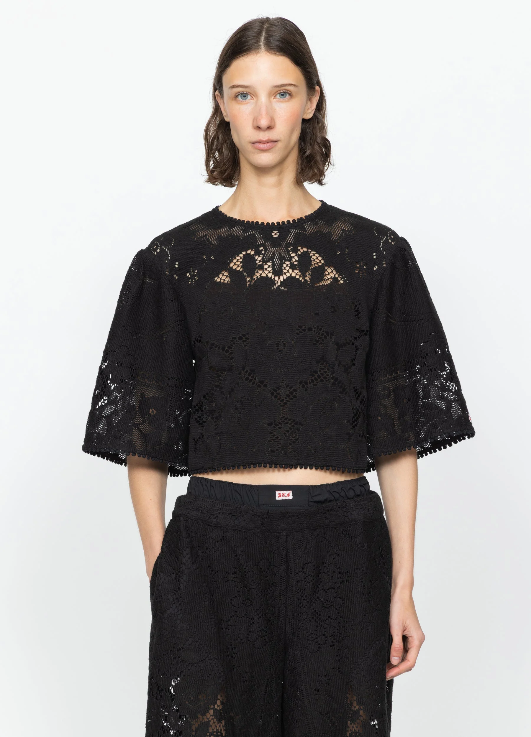 The Arianna lace top is crafted from intricate floral lace, with short sleeves and a cropped silhouette. Delicate trim along the edges adds a polished, feminine finish. Pairs perfectly with the Arianna lace culottes for a coordinated ensemble. DETAILS - self-80% polyester, 20% cotton - slip-100% cotton - button back fastening - designed for a relaxed fit - style #RS26-059 - model is 5'10'' and wearing a size S