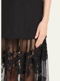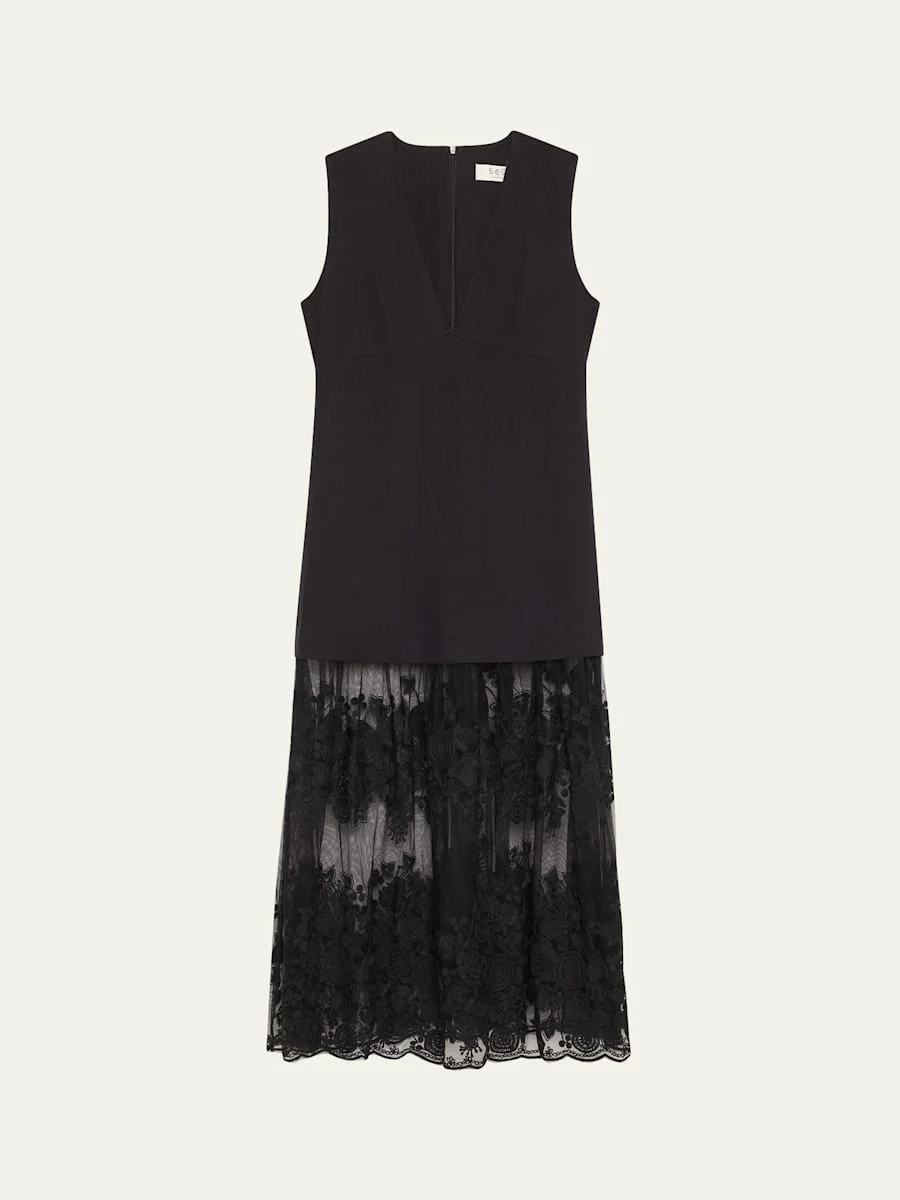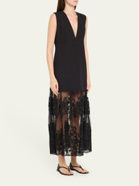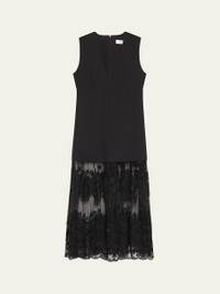 Sea "Arielle" midi dress finished with lace hem Plunging V neckline Sleeveless A-line silhouette Hem falls below the knee Center back zip Cotton/linen/polyester Dry clean Imported Online Inquiries: BGS21_T6TVQ| Store Inquiries: #5034368