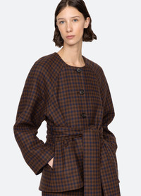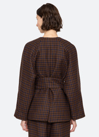 The Beatrice wool check print jacket combines soft structure with statement details, including voluminous sleeves and a removable belt. Pair it with the matching Beatrice pants for a refined, coordinated look. DETAILS - self-42% acrylic, 29% polyester, 23% wool, 4% polyamide, 1% cotton, 1% viscose - lining-100% polyester - button front - designed for an oversized, relaxed fit - style #AW25-076 - model is 5'10'' and wearing a size S
