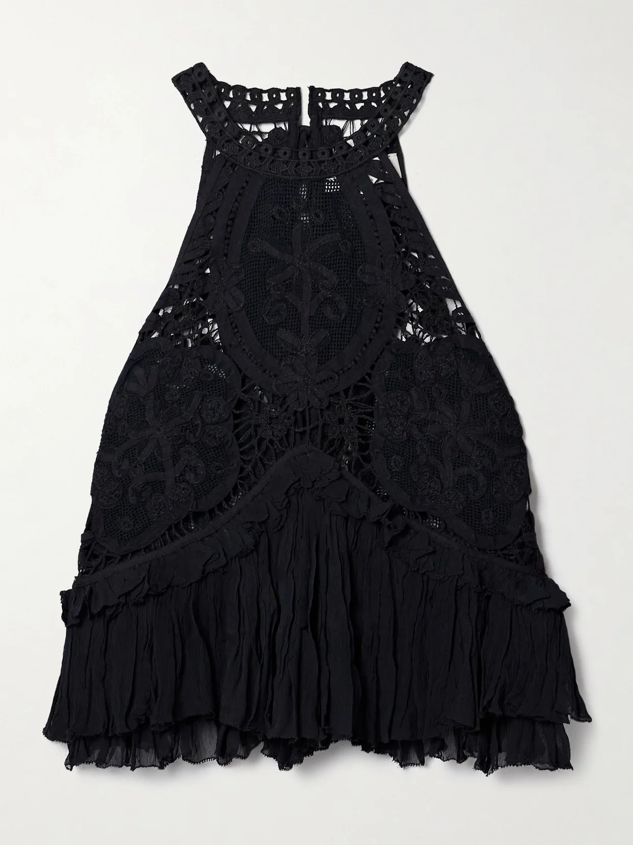 Bente Ruffled Cotton Crepon-trimmed Lace Tank