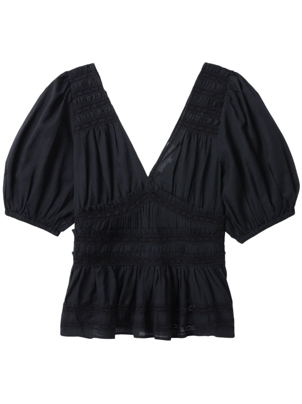 Nomi blouse Highlights - Black - V-neck - Half-length sleeves - V-back Imported Composition Cotton 55%, Rayon 45%