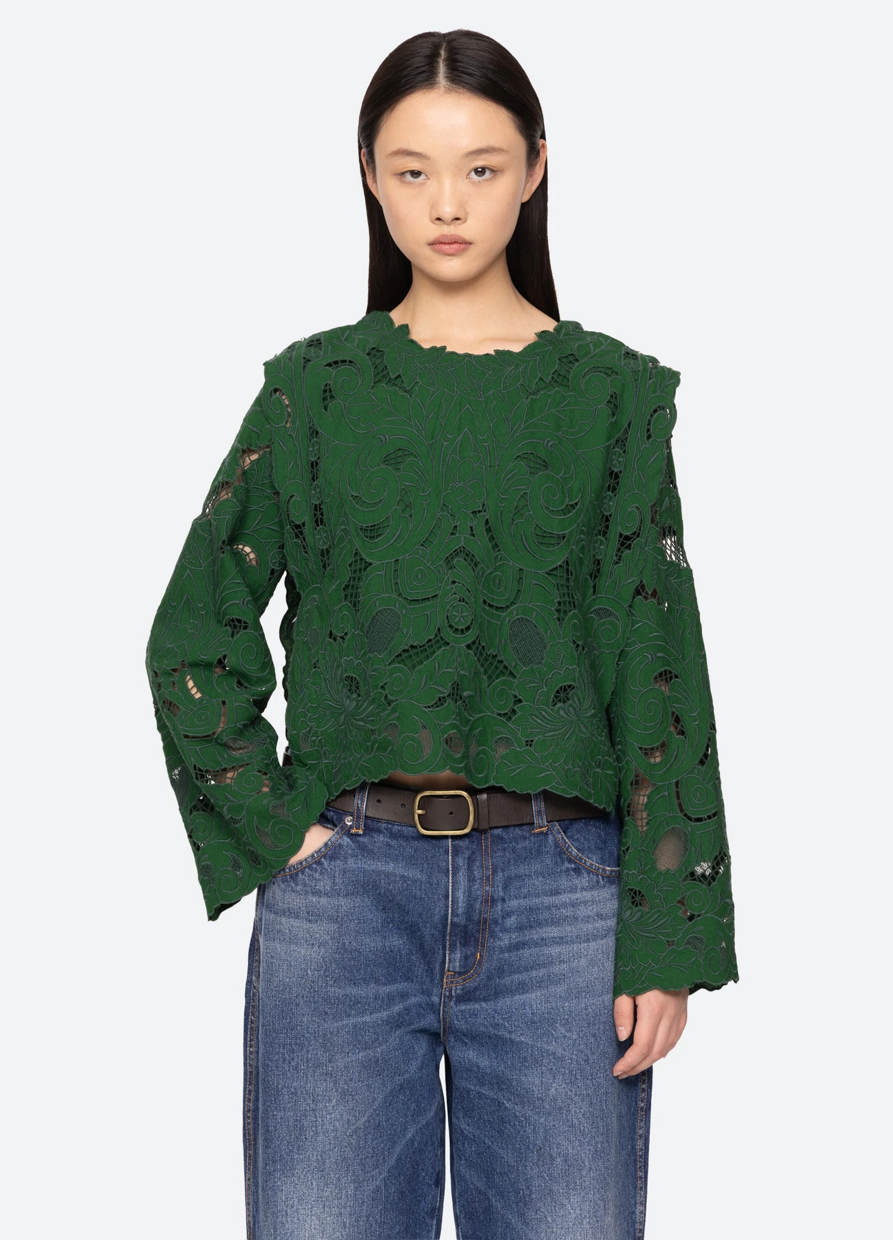 The Ceci embroidered long sleeve top features delicate floral embroidery, intricate cut-out detailing, and cropped silhouette. Gracefully combining timeless femininity with a touch of modern elegance. DETAILS - self-85% cotton, 15% linen - embroidery-100% polyester - button back closure - designed for a relaxed fit - style #AW25-019 - model is 5'10'' and wearing a size S