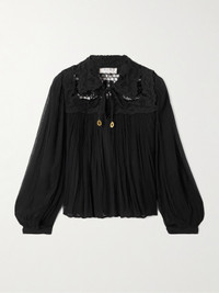 Daphne Lace-trimmed Crinkled Crepon Blouse