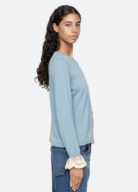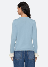 The Diane knit cardigan features intricate folkloric-inspired buttons and detachable lace cuffs, combining artisanal charm with versatile elegance. DETAILS - self-100% wool - decoration-90% polyamide, 10% spandex - embroidery-100% polyester - button front - designed for a slimmer fit - style #RS26-101 - model is 5'10'' and wearing a size S