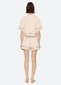 An online and in store exclusive. The Edwina mama short pajama set features front tie closures, lace and embroidered accents throughout and embroidered 'Mama' detail. DETAILS - 100% cotton - tie front - elasticized waist - designed for a relaxed fit - style #MC25-013 - model is 5'10'' and wearing a size S