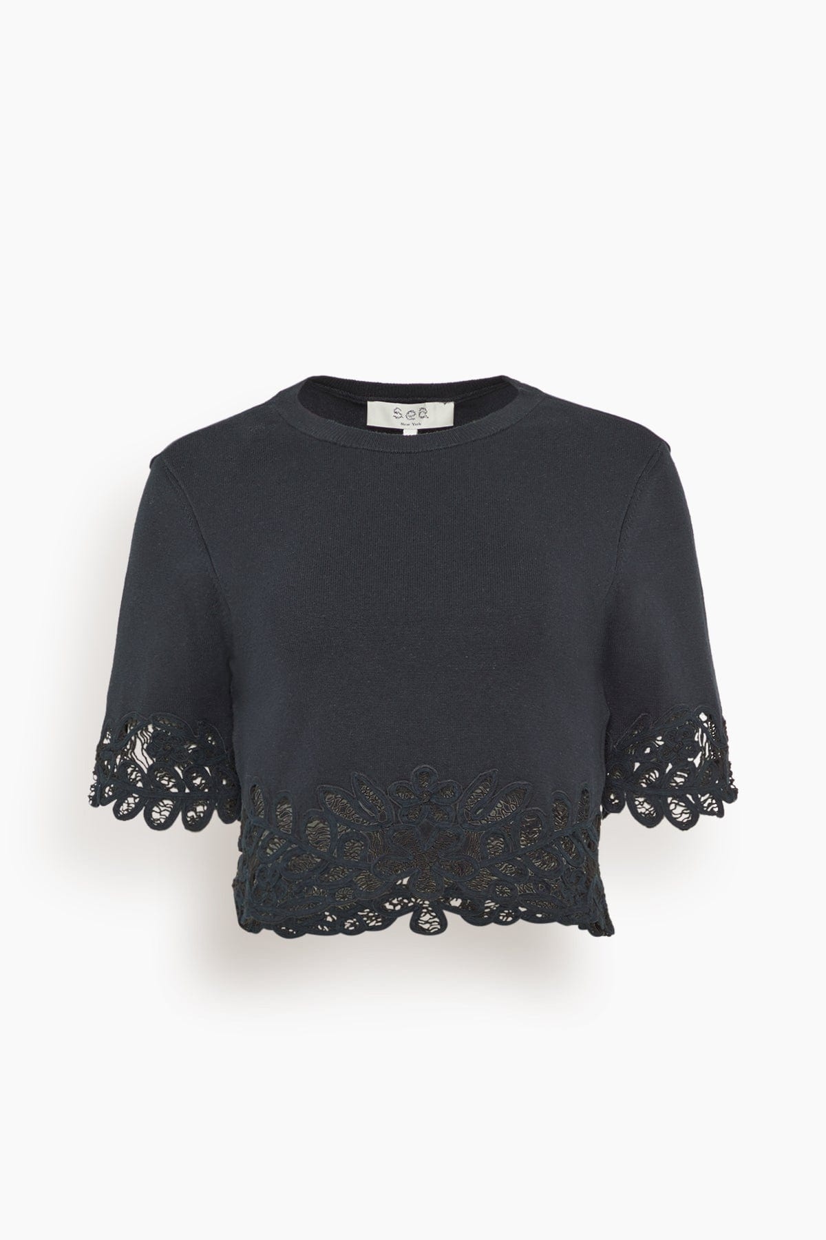 The SEA Elke Soutache Sweater is a must-have piece from their Spring 25 Collection. This short sleeve sweater is crafted in cotton with a beautiful embroidered hemline. Wear yours with shorts and sandals. FIT DESCRIPTION MODEL MEASUREMENTS - Fits true to size, take your normal size - Short sleeve sweater - Boxy silhouette - Embroidered hemline - 100% cotton - Harriet is wearing a size XS - Bust: 32" - Waist: 24" - Hips: 30.5" - Height: 5’8.5”