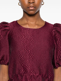 puff-sleeve tiered dress Highlights - Burgundy red - Round neck - Short puff sleeves - Tiered skirt - Rear button fastening Imported Composition Fabric 100% SIZE & FIT Model measurements Height 5 ft 8 in(1.73 m) Bust/Chest 29.92 in(76 cm) Hips 33.07 in(84 cm) Waist 23.22 in(59 cm) Washing instructions Read Manufacturer Guidelines