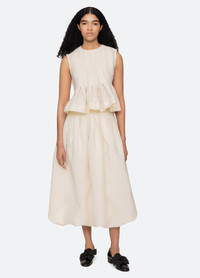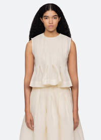 The Fayetta animal print jacquard tank top features detailed pleating that adds dimension and movement to its refined, feminine design. This piece pairs beautifully with the coordinating Fayetta bubble skirt. DETAILS - 100% polyester - button back closure - designed for a relaxed fit - style #AW25-033 - model is 5'10'' and wearing a size S
