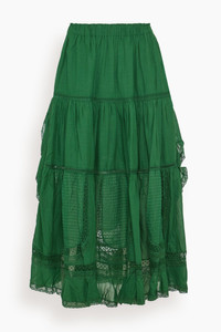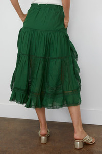 The SEA Franca Lace Midi Skirt features the bohemian details you love from this designer. This midi skirt has a tiered silhouette with a lace trim. Wear yours with a sweater and boots. - Midi length - Tiered silhouette - Lace trim - High rise - 55% cotton, 45% viscose;