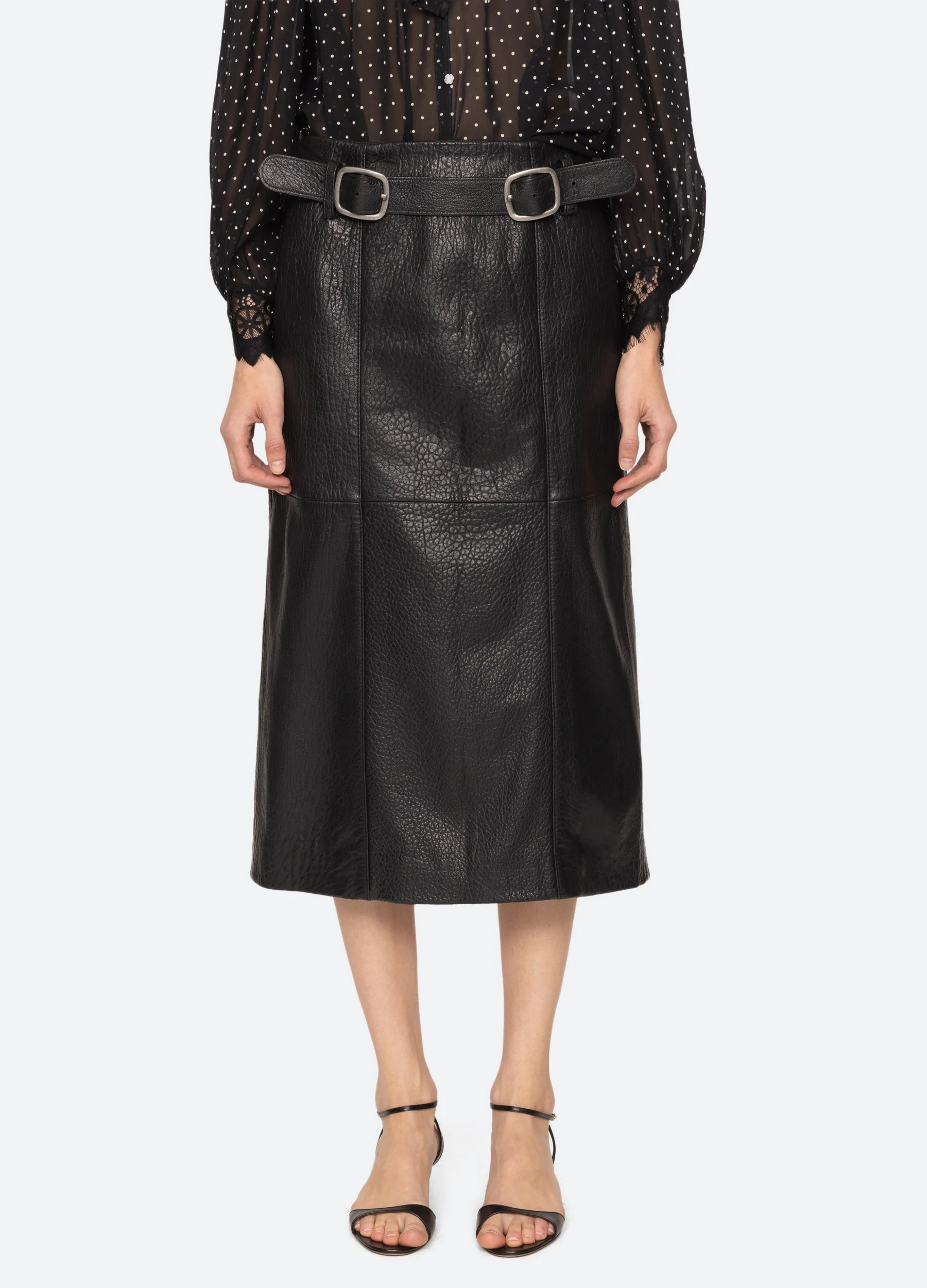 The Gwen leather skirt is crafted from supple leather in a sleek midi silhouette. It's finished with a removable belt, offering versatile styling and a polished, modern edge. DETAILS - self-100% lamb leather - lining-100% poly viscose - exposed back zipper - designed for a slimmer fit - style #RS26-089 - model is 5'10'' and wearing a size 4