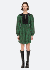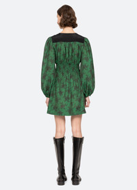 The Joan floral print tunic dress features long voluminous sleeves and a chic mini silhouette. Detailed pleating at the bodice and front tie closure lend a romantic, tailored touch, while the smocked waist defines the shape with subtle elegance. A versatile piece that transitions from day to evening. DETAILS - 80% viscose, 20% nylon - tie front closure - style #AW25-042 - model is 5'10'' and wearing a size S
