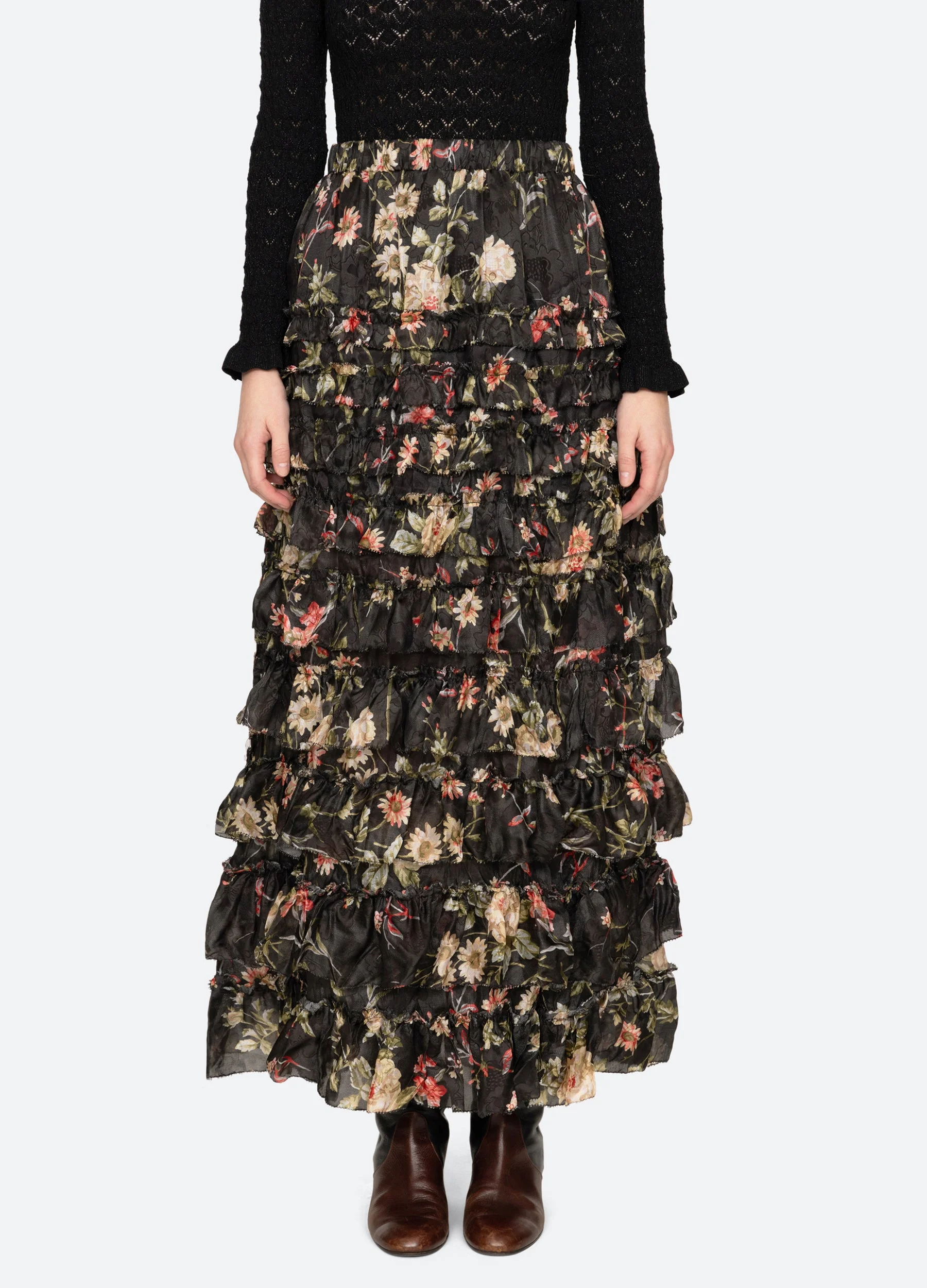 The Jolie floral print maxi skirt features a flattering elasticized waistband and a graceful maxi silhouette. The tiered ruffle skirt creates soft, romantic movement with every step. DETAILS - self-70% polyester, 30% nylon - lining-100% cotton - slip on - designed for a relaxed fit - style #AW25-050 - model is 5'10'' and wearing a size S