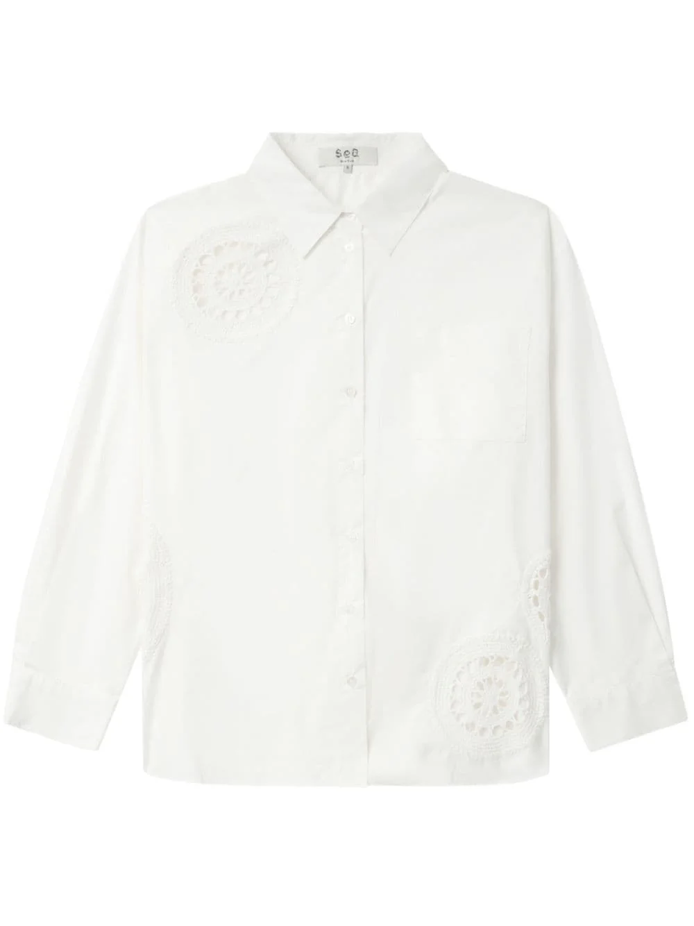 Joy cotton shirt Highlights - White - Cotton - Crochet - Classic collar - Front button fastening - Long sleeves - Buttoned cuffs - Chest patch pocket - Straight hem Imported Composition Cotton 100%