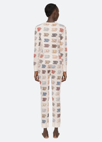 Part of the apres ski capsule, the Karmen tea cup thermal set features a partial button-up front and long sleeves. Decorated with a whimsical tea cup print throughout. DETAILS - 100% cotton - button front - slip on - elasticized waist - designed for a relaxed fit - style #AS25-021 - model is 5'10'' and wearing a size S