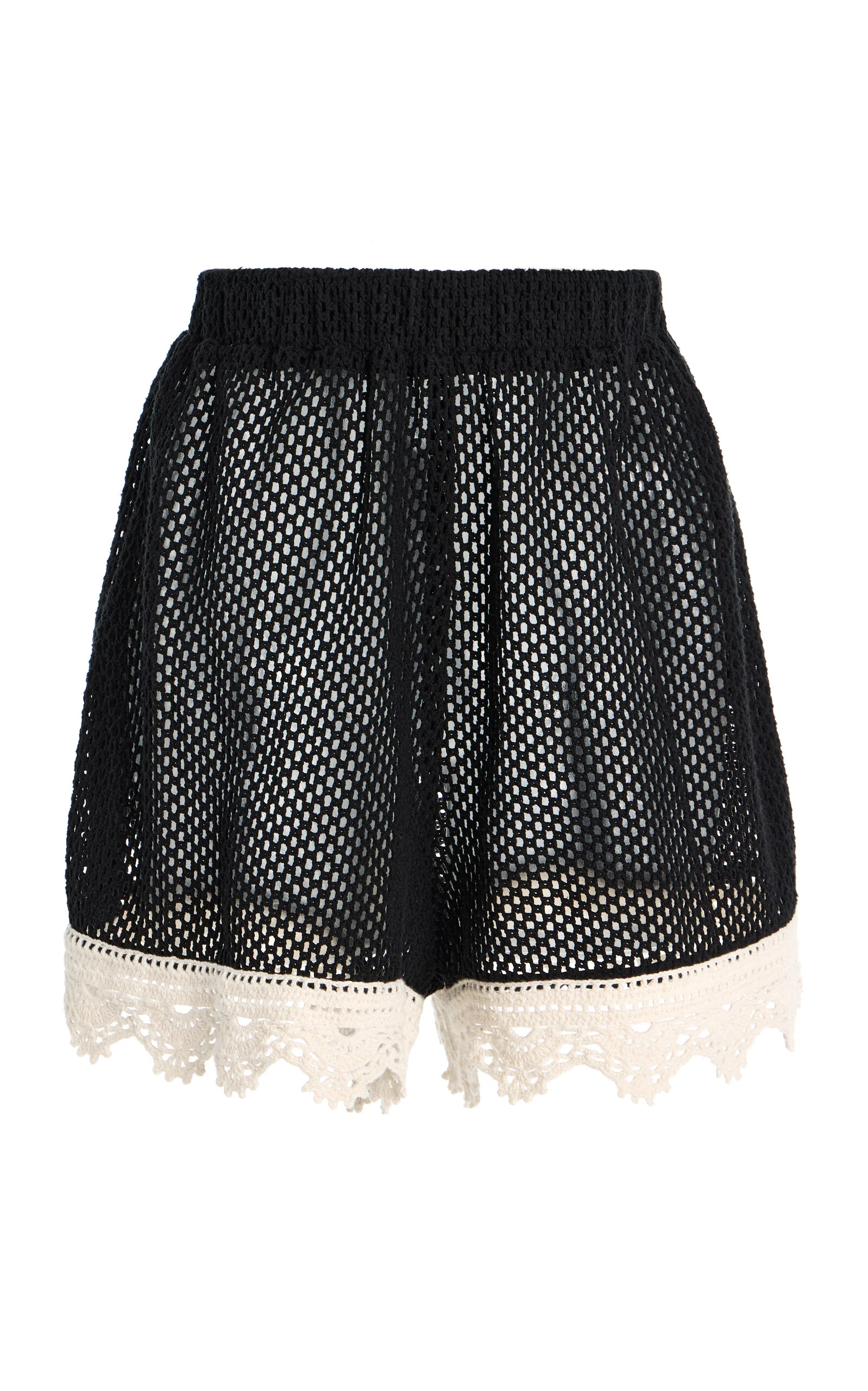 NYC-based Monica Paolini and Sean Monahan dream up pieces that resemble the perfect vintage find—and this season, they lean into their signature cool folksy-femininity. The ‘Kendall’ shorts are crocheted from 100% cotton and finished with contrast scalloped trim at the hem. Pair them with the matching top for a coordinated look. PRODUCT DETAILS - Resort '26 - Pull on - Composition: 100% cotton - Dry clean - Imported SIZE & FIT - Our model is wearing a size Small - Model is 5'10" with a 30" bust, 24" waist, and 34" hip