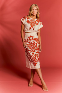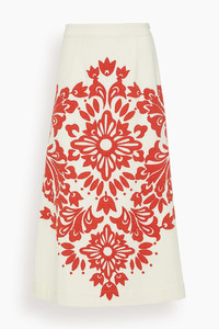 The Sea Liliana applique skirt features exquisite applique detailing, adding depth and texture to its classic midi silhouette. - self-88% cotton, 12% linen - applique-100% cotton - lining-100% cotton - invisible side zipper - designed for a slimmer fit