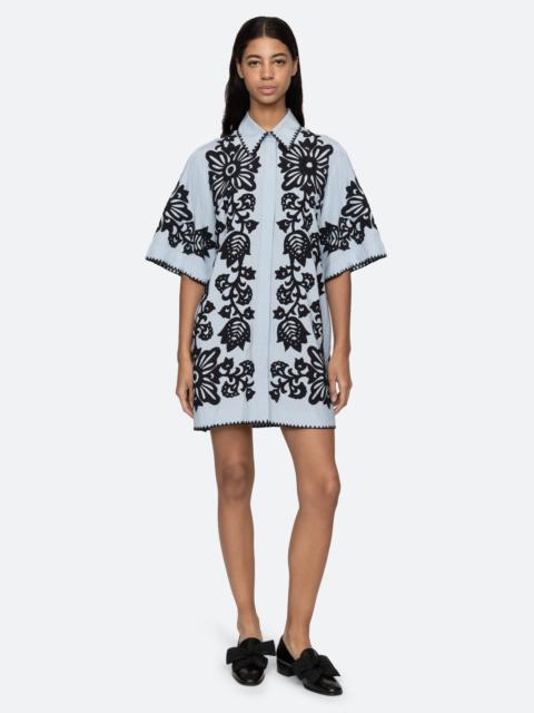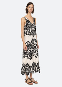 The Liliana applique tank dress features delicate applique detailing throughout, adding depth and texture to its classic silhouette. Designed with a deep V-neckline and a midi length. DETAILS - self-88% cotton, 12% linen - applique-100% cotton - lining-100% cotton - invisible side zipper - designed for a slimmer fit - style #PF25-067 - model is 5'10'' and wearing a size 4