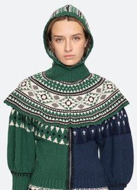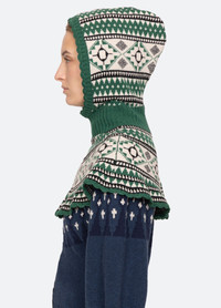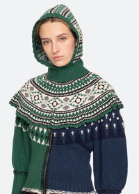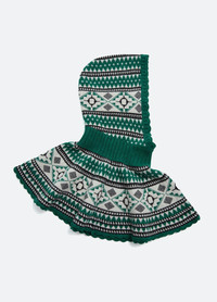 The Linea balaclava features a striking fair isle pattern and a wide collar, blending warmth with standout style. Thoughtfully designed for both comfort and flair, it's the perfect cold weather statement piece. DETAILS - 100% extrafine merino wool - one size - style #AW25-091