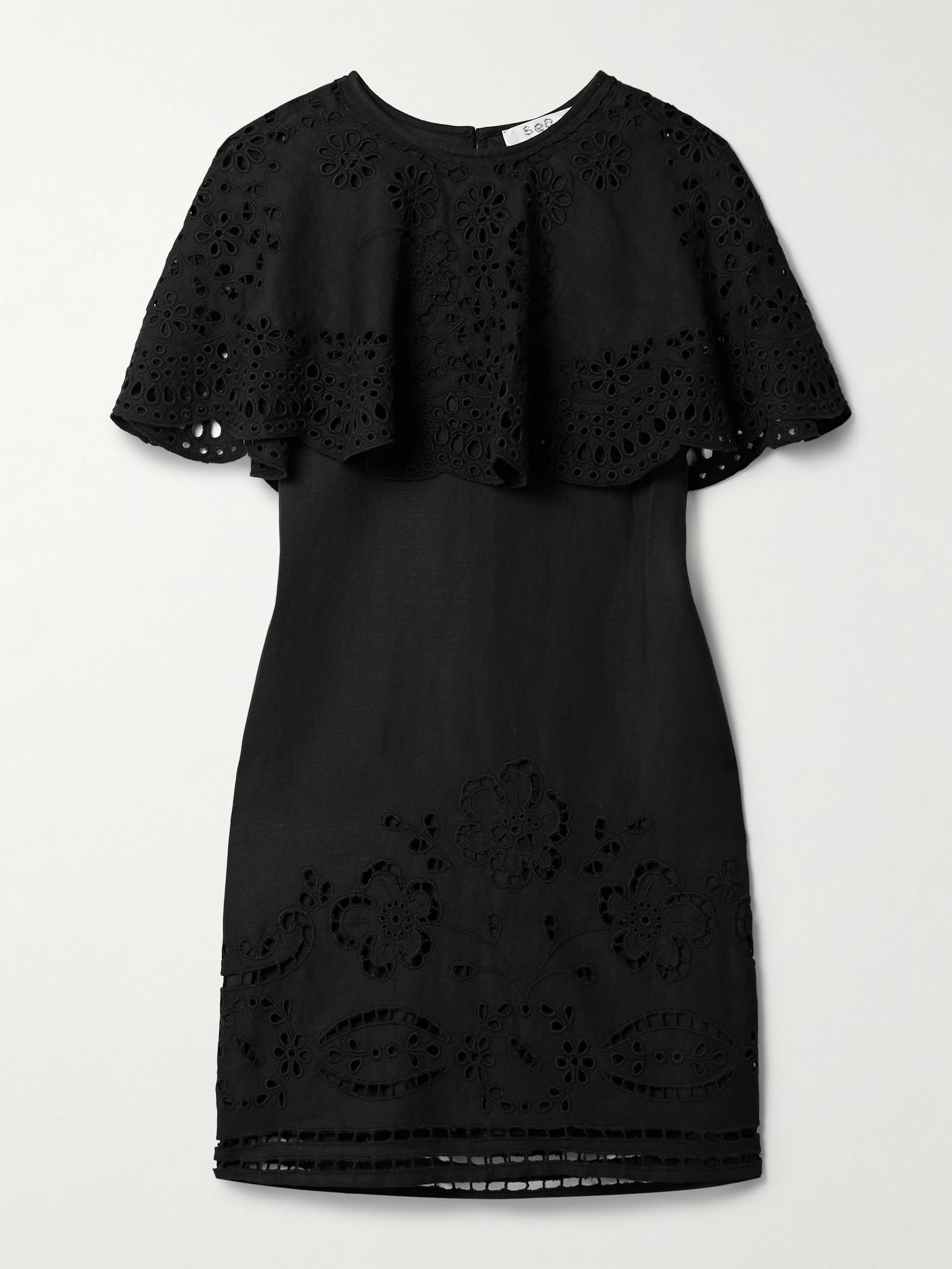 Sea's 'Lula' mini dress is designed with an overlay that drapes effortlessly along the shoulders. It's made from breathable broderie anglaise featuring a pretty floral motif and has a loose shape lined in voile for coverage. Wear yours with sandals. Size & Fit - Fits true to size, take your normal size - Designed for a loose fit - Mid-weight, non-stretchy fabric - Model is 180cm/ 5'11" and is wearing a size XSmall Details & Care - Black broderie anglaise - Button-fastening keyhole at back - 55% viscose, 45% linen; lining: 100% cotton - Fully lined - Dry clean - Mother-of-pearl: India