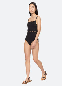 The Mae eyelet one piece features eyelet detailing throughout and cutouts at the waist. DETAILS - self-85% nylon, 25% spandex - lining-94% nylon, 6% spandex - embroidery-100% polyester - slip on - designed for a slimmer fit - style #SS25-720 - model is 5'10'' and wearing a size S