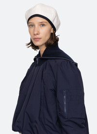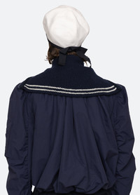 The Marie beret hat features a delicate bow and contrasting trim, offering a sophisticated flair. Designed in a versatile cream hue. DETAILS - 100% cotton - one size - style #PF25-100