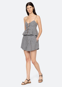 The Neci gingham top features front tie closures, flared hem and cropped silhouette. Pairs perfectly with the Neci gingham shorts. DETAILS - 100% cotton - tie front - designed for a relaxed fit - style #PF25-021 - model is 5'10'' and wearing a size S