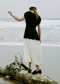 The Nicola dress features a deep v-neckline, pleated detailing and midi silhouette. DETAILS - self-100% ramie - lining-100% cotton - invisible back zipper - designed for a slimmer fit - style #PF25-080 - model is 5'10'' and wearing a size 4